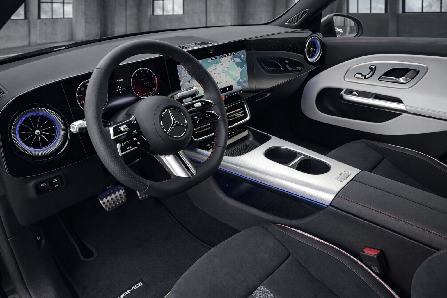 • Komfort i multimedia: MBUX Superscreen, wyświetlacz kierowcy + centralny, nawigacja MBUX, MBUX Entertainment (3 lata), moduł komunikacyjny 5G, Apple CarPlay, Android Auto, radio cyfrowe, bezprzewodowe ładowanie telefonu + Bluetooth, pakiet USB Plus, funkcje MBUX (w tym wirtualny asystent), funkcja cyfrowego kluczyka (przygotowanie)